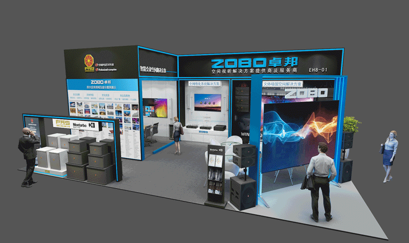 本次ZOBO麻豆影院91性欲展位(E馆EH8-01),分为文体场馆空间、智能会议空间、全网络化空间。在这里,您将一览拥有前沿技术的多款音视频产品和完善的空间视听解决方案。